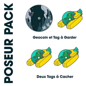 ✅ Pack Poseur : Un géocoin + 1 tag assorti à garder, et 2 tags à cacher.