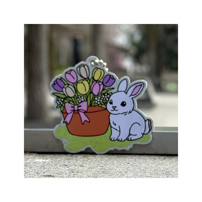 Un très joli Travel Tag printanier : ce lapin tout mignon semblant sortir du pot de tulipes est le traçable parfait pour apporter une touche de gaieté dans les boîtes que vous visiterez.